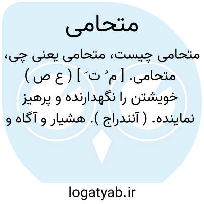 متحامی. [ م ُ ت َ ] ( ع ص ) خویشتن را نگهدارنده و پرهیز نماینده. ( آنندراج ). هشیار و آگاه و ملتفت و متنبه و دوراندیش. ( ناظم الاطباء ) ( از فرهنگ جانسون ). و رجوع به تحامی شود.