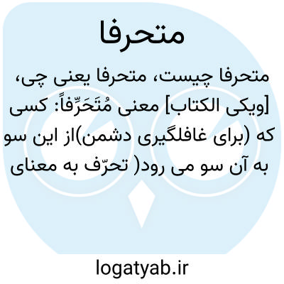 [ویکی الکتاب] معنی مُتَحَرِّفاً: کسی که (برای غافلگیری دشمن)از این سو به آن سو می رود( تحرّف به معنای انحراف از خط وسط و میل به حرف است که به معنای طرف هر چیزی است )