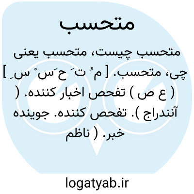 متحسب. [ م ُ ت َ ح َس ْ س ِ ] ( ع ص ) تفحص اخبار کننده. ( آنندراج ). تفحص کننده. جوینده خبر. ( ناظم الاطباء ).