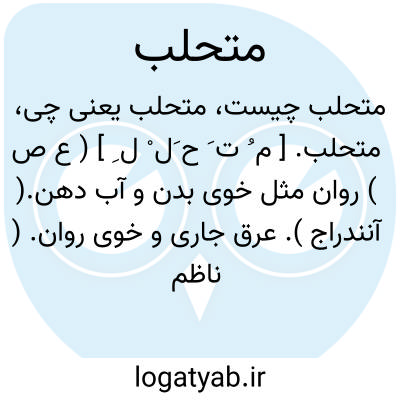 متحلب. [ م ُ ت َ ح َل ْ ل ِ ] ( ع ص ) روان مثل خوی بدن و آب دهن.( آنندراج ). عرق جاری و خوی روان. ( ناظم الاطباء ). خوی روان. ( از منتهی الارب ). || دوشیده. ( ناظم الاطباء ) ( از فرهنگ جانسون ). و رجوع به تحلب شود.