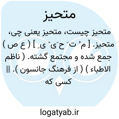 متحیز. [ م ُ ت َ ح َی ْ ی ِ ] ( ع ص ) جمع شده و مجتمع گشته. ( ناظم الاطباء ) ( از فرهنگ جانسون ). || کسی که در مکانی محصور باشد. ( از اقرب الموارد ).