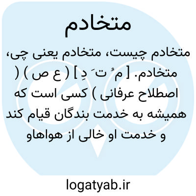 متخادم. [ م ُ ت َ دِ ] ( ع ص ) ( اصطلاح عرفانی ) کسی است که همیشه به خدمت بندگان قیام کند و خدمت او خالی از هواهاو شوائب نفسانی باشد، ولیکن هنوز به حقیقت زهد نرسیده باشد. گاه به سبب غلبه ایمان بعضی از خدمات او در محل قبول افتد و گاه به واسطه غلبه هوا خدمت او قبول نشود. ( فرهنگ لغات و اصطلاحات سیدجعفر سجادی ).