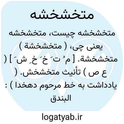 لغت نامه دهخدا ( متخشخشة ) متخشخشة. [ م ُ ت َ خ َ خ ِ ش َ ] ( ع ص ) تأنیث متخشخش. ( یادداشت به خط مرحوم دهخدا ): البندق الهندی، متخشخشة. ( ابن سینا از یادداشت ایضاً ). و رجوع به ماده قبل شود.