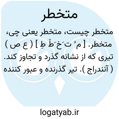 متخطر. [ م ُ ت َخ َطْ طِ ] ( ع ص ) تیری که از نشانه گذرد و تجاوز کند. ( آنندراج ). تیر گذرنده و عبور کننده و یا از نشانه تجاوز کننده. ( ناظم الاطباء ). و رجوع به تخطر شود.
