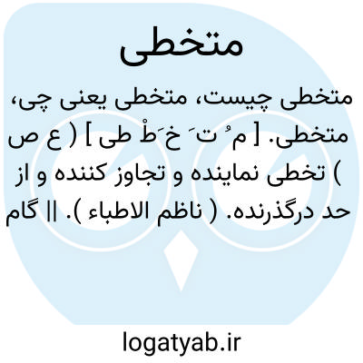 متخطی. [ م ُ ت َ خ َطْ طی ] ( ع ص ) تخطی نماینده و تجاوز کننده و از حد درگذرنده. ( ناظم الاطباء ). || گام نهنده یا گام فراخ نهنده. ( ناظم الاطباء ) ( از فرهنگ جانسون ). و رجوع به تخطی شود.
