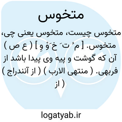 متخوس. [ م ُ ت َ خ َوْ وِ ] ( ع ص ) آن که گوشت و پیه وی پیدا باشد از فربهی. ( منتهی الارب ) ( از آنندراج ) ( از اقرب الموارد ) ( از ناظم الاطباء ).