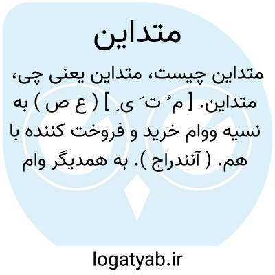 متداین. [ م ُ ت َ ی ِ ] ( ع ص ) به نسیه ووام خرید و فروخت کننده با هم. ( آنندراج ). به همدیگر وام دهنده. ( ناظم الاطباء ). و رجوع به تداین شود.