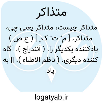 متذاکر. [ م ُ ت َ ک ِ ] ( ع ص ) یادکننده یکدیگر را. ( آنندراج ). آگاه کننده دیگری. ( ناظم الاطباء ). || به یاد همدیگر آمده. ( ناظم الاطباء ) ( از فرهنگ جانسون ). و رجوع به تذاکر شود.