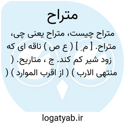 متراح. [ م ِ ] ( ع ص ) ناقه ای که زود شیر کم کند. ج، متاریح. ( منتهی الارب ) ( از اقرب الموارد ) ( آنندراج ) ( از ناظم الاطباء ).