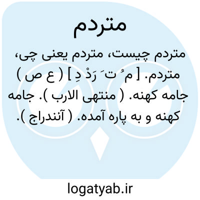 متردم. [ م ُ ت َ رَدْ دِ ] ( ع ص ) جامه کهنه. ( منتهی الارب ). جامه کهنه و به پاره آمده. ( آنندراج ). جامه کهنه و جامه درپی کرده. ( ناظم الاطباء ). || درپی کننده جامه را. ( آنندراج ). درپی کننده. ( ناظم الاطباء ). و رجوع به تردم شود.