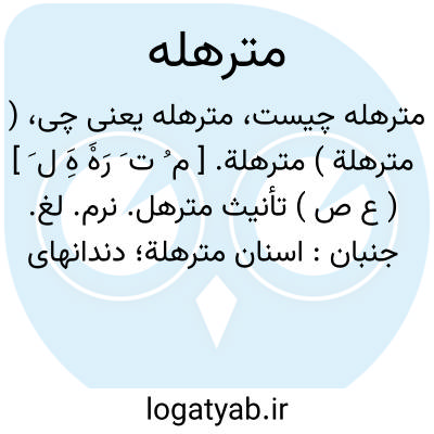 ( مترهلة ) مترهلة. [ م ُ ت َ رَهَْ هَِ ل َ ] ( ع ص ) تأنیث مترهل. نرم. لغ. جنبان: اسنان مترهلة؛ دندانهای لغ. دندانهای جنبان. ( یادداشت بخط مرحوم دهخدا ).