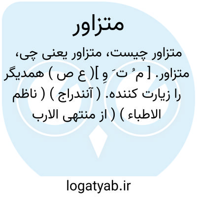 متزاور. [ م ُ ت َ وِ ]( ع ص ) همدیگر را زیارت کننده. ( آنندراج ) ( ناظم الاطباء ) ( از منتهی الارب ) ( از اقرب الموارد ). || برگشته از چیزی و مایل شده. ( ناظم الاطباء ) ( از منتهی الارب ) ( از اقرب الموارد ). و رجوع به تزاور شود.