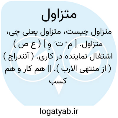متزاول. [ م ُ ت َ وِ ] ( ع ص ) اشتغال نماینده در کاری. ( آنندراج ) ( از منتهی الارب ). || هم کار و هم کسب و هم زحمت. ( ناظم الاطباء ). با هم واکوشنده. ( آنندراج ) ( از منتهی الارب ) ( از اقرب الموارد ). و رجوع به تزاول شود.