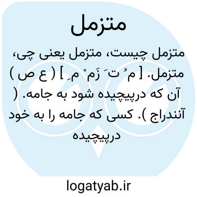متزمل. [ م ُ ت َ زَم ْ م ِ ] ( ع ص ) آن که درپیچیده شود به جامه. ( آنندراج ). کسی که جامه را به خود درپیچیده باشد. ( ناظم الاطباء ) ( از منتهی الارب ) ( از اقرب الموارد ). و رجوع به مزمل شود.