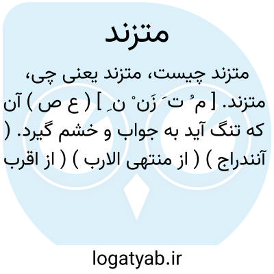 متزند. [ م ُ ت َ زَن ْ ن ِ ] ( ع ص ) آن که تنگ آید به جواب و خشم گیرد. ( آنندراج ) ( از منتهی الارب ) ( از اقرب الموارد ). مغلوب شده از برهان و بی جواب و عاجز و ناتوان از جواب. ( ناظم الاطباء ). || خشمگین. ( ناظم الاطباء ) ( ازمنتهی الارب ) ( از اقرب الموارد ). و رجوع تزند شود.