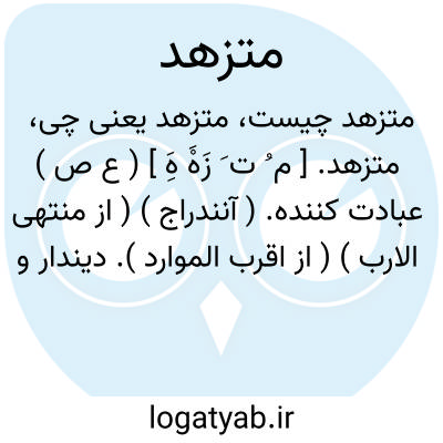 ( اسم ) زهد و رزنده عبادت کننده: چون عمرو ( بن عاص ) از حال متزهدان استفسار فرمود بتحقیق پیوست که ایشان گریخته اند جمع: متزهدین.