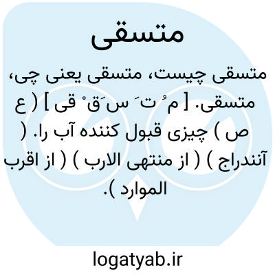 متسقی. [ م ُ ت َ س َق ْ قی ] ( ع ص ) چیزی قبول کننده آب را. ( آنندراج ) ( از منتهی الارب ) ( از اقرب الموارد ). آغشته و تر شده و بخودکشنده و جذب کننده آب و مانند آن. ( ناظم الاطباء ). و رجوع به تسقی شود.