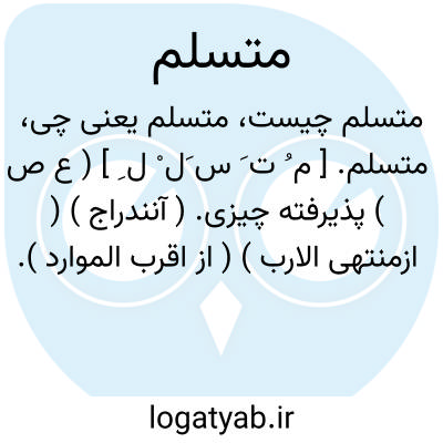 متسلم. [ م ُ ت َ س َل ْ ل ِ ] ( ع ص ) پذیرفته چیزی. ( آنندراج ) ( ازمنتهی الارب ) ( از اقرب الموارد ). کسی که می گیرد هر چیز بخشیده شده را و آن را در ملکیت خود نگاه می دارد.( ناظم الاطباء ). || کسی که اسلام آورده باشد. ( ناظم الاطباء ) ( از اقرب الموارد ) ( از منتهی الارب ). || آن که راه می پیماید بدون خطا کردن. ( ناظم الاطباء ) ( از منتهی الارب ). و رجوع به تسلم شود.