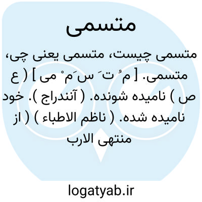 متسمی. [ م ُ ت َ س َم ْ می ] ( ع ص ) نامیده شونده. ( آنندراج ). خود نامیده شده. ( ناظم الاطباء ) ( از منتهی الارب ). || منسوب. ( ناظم الاطباء ) ( از منتهی الارب ) ( از اقرب الموارد ). و رجوع به تسمی شود.