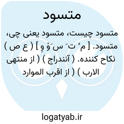 متسود. [ م ُ ت َ س َوْ وِ ] ( ع ص ) نکاح کننده. ( آنندراج ) ( از منتهی الارب ) ( از اقرب الموارد ). مردی که عروسی می کندو زن می گیرد. ( ناظم الاطباء ). و رجوع به تسود شود.