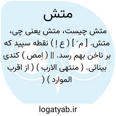 متش. [ م َ ] ( ع اِ ) نقطه سپید که بر ناخن بهم رسد. || ( اِمص ) کندی بینائی. ( منتهی الارب ) ( از اقرب الموارد ) ( آنندراج ) ( ناظم الاطباء ) ( از محیطالمحیط ). || علتی در چشم. ( منتهی الارب ) ( آنندراج ) ( ناظم الاطباء ) ( از اقرب الموارد ).