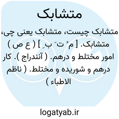 متشابک. [ م ُ ت َ ب ِ ] ( ع ص ) امور مختلط و درهم. ( آنندراج ). کار درهم و شوریده و مختلط. ( ناظم الاطباء ) ( از منتهی الارب ) ( از اقرب الموارد ). رجوع به تشابک شود.