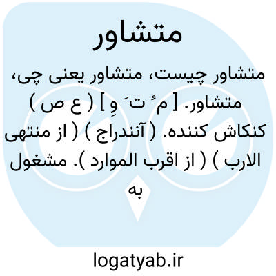 متشاور. [ م ُ ت َ وِ ] ( ع ص ) کنکاش کننده. ( آنندراج ) ( از منتهی الارب ) ( از اقرب الموارد ). مشغول به کنکاش و مشاورت. ( ناظم الاطباء ). و رجوع به تشاور شود.