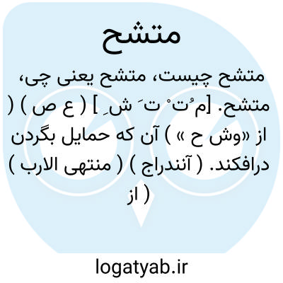 لغت نامه دهخدا متشح. [م ُت ْ ت َ ش ِ ] ( ع ص ) ( از «وش ح » ) آن که حمایل بگردن درافکند. ( آنندراج ) ( منتهی الارب ) ( از اقرب الموارد ).