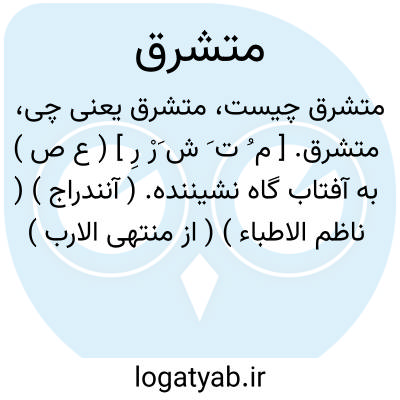متشرق. [ م ُ ت َ ش َرْ رِ ] ( ع ص ) به آفتاب گاه نشیننده. ( آنندراج ) ( ناظم الاطباء ) ( از منتهی الارب ) ( از اقرب الموارد ).