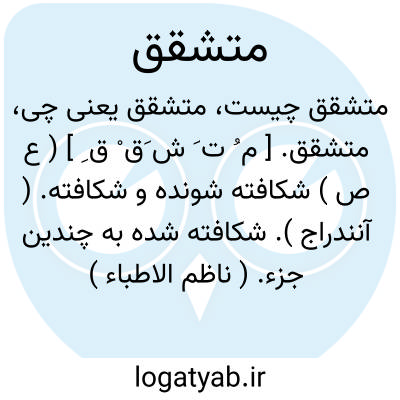 متشقق. [ م ُ ت َ ش َق ْ ق ِ ] ( ع ص ) شکافته شونده و شکافته. ( آنندراج ). شکافته شده به چندین جزء. ( ناظم الاطباء ) ( از منتهی الارب ). || برق روشن و تابان. ( ناظم الاطباء ) ( از اقرب الموارد ) ( از منتهی الارب ). و رجوع به تشقق شود.