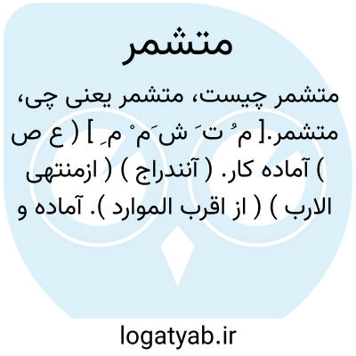 متشمر.[ م ُ ت َ ش َم ْ م ِ ] ( ع ص ) آماده کار. ( آنندراج ) ( ازمنتهی الارب ) ( از اقرب الموارد ). آماده و مهیا و آماده شده برای کاری. ( ناظم الاطباء ) ( از فرهنگ جانسون ): چون... فضیحت خود بدید [ شتربه ]... مستعد و متشمر روی بگرداند. ( کلیله و دمنه ). و مستعد و متشمر بایستاد ناگاه به آبی برسید ( ترجمه تاریخ یمینی چ 1 تهران ص 268 ). و سلطان مستعد کار شد و متشمر کارزار و جمله اعیان خانان را حاضر کرد. ( جهانگشای جوینی ). مستعد و متشمر کار گشتند و خواستند که آن عزیمت بامضا رسانند. ( جهانگشای جوینی ). و سلطان مستعد کار شد و متشمر کارزار. ( جهانگشای جوینی ص 168 ج 2 ).