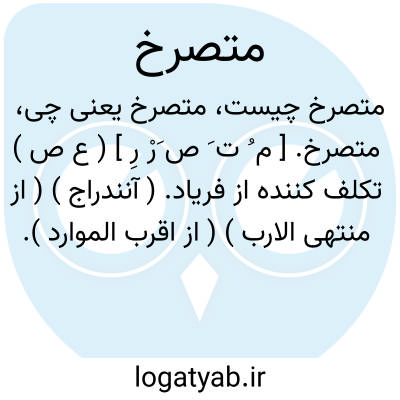 متصرخ. [ م ُ ت َ ص َرْ رِ ] ( ع ص ) تکلف کننده از فریاد. ( آنندراج ) ( از منتهی الارب ) ( از اقرب الموارد ). کسی که می غرد و فریاد کننده. ( ناظم الاطباء ).