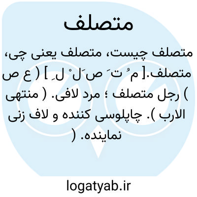 متصلف.[ م ُ ت َ ص َل ْ ل ِ ] ( ع ص ) رجل متصلف؛ مرد لافی. ( منتهی الارب ). چاپلوسی کننده و لاف زنی نماینده. ( آنندراج ). تملق کننده. ( از اقرب الموارد ). و رجوع به تصلف شود.