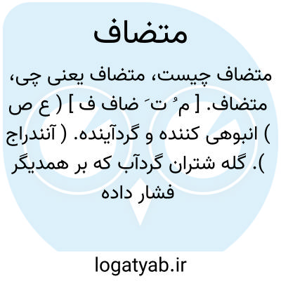 متضاف. [ م ُ ت َ ضاف ف ] ( ع ص ) انبوهی کننده و گردآینده. ( آنندراج ). گله شتران گردآب که بر همدیگر فشار داده انبوهی کنند. ( ناظم الاطباء ) ( از منتهی الارب ) ( از اقرب الموارد ). و رجوع به تضاف شود.