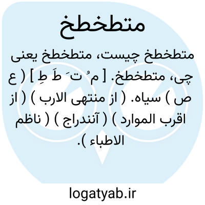 متطخطخ. [ م ُ ت َ طَ طِ ] ( ع ص ) سیاه. ( از منتهی الارب ) ( از اقرب الموارد ) ( آنندراج ) ( ناظم الاطباء ). || ابر سیاه و تو بر تو. ( از منتهی الارب ) ( از اقرب الموارد ) ( آنندراج ). ابر سیاه و ابر انبوه شده بر روی هم. ( ناظم الاطباء ). || سست بینا. ( از محیط المحیط ) ( از تاج العروس ) ( از منتهی الارب ) ( از اقرب الموارد ) ( آنندراج ) ( ناظم الاطباء ).