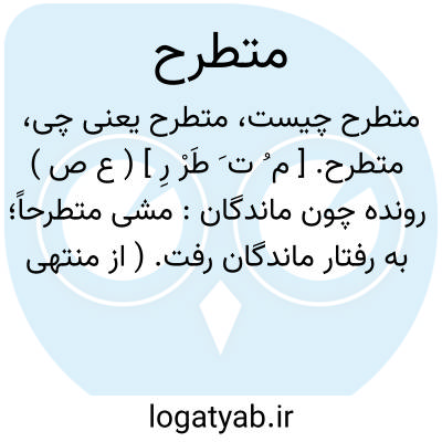 متطرح. [ م ُ ت َ طَرْ رِ ] ( ع ص ) رونده چون ماندگان: مشی متطرحاً؛ به رفتار ماندگان رفت. ( از منتهی الارب ) ( ناظم الاطباء ) ( از اقرب الموارد ).