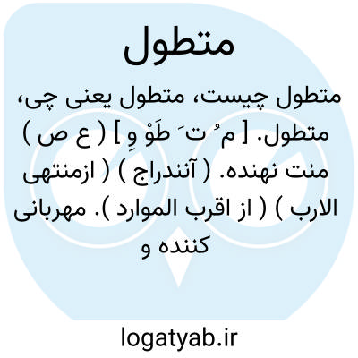 متطول. [ م ُ ت َ طَوْ وِ ] ( ع ص ) منت نهنده. ( آنندراج ) ( ازمنتهی الارب ) ( از اقرب الموارد ). مهربانی کننده و منعم و نیکوکار. ( ناظم الاطباء ). و رجوع به تطول شود.