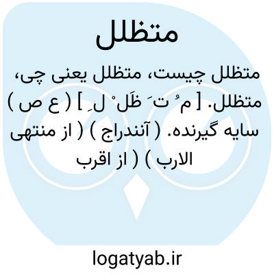 متظلل. [ م ُ ت َ ظَل ْ ل ِ ] ( ع ص ) سایه گیرنده. ( آنندراج ) ( از منتهی الارب ) ( از اقرب الموارد ). و رجوع به تظلل شود. || سایه دار وسایه گسترده. ( ناظم الاطباء ). و رجوع به تظلل شود.
