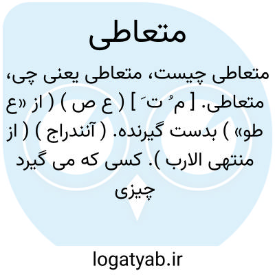 متعاطی. [ م ُ ت َ ] ( ع ص ) ( از «ع طو» ) بدست گیرنده. ( آنندراج ) ( از منتهی الارب ). کسی که می گیرد چیزی را برای خوردن و یا آشامیدن. ( ناظم الاطباء ) ( از اقرب الموارد ). || برای یکدیگر هدیه فرستنده. ( ناظم الاطباء ) ( از فرهنگ جانسون ). و رجوع به تعاطی شود.