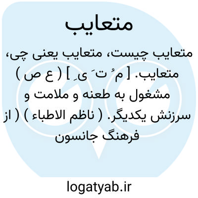 متعایب. [ م ُ ت َ ی ِ ] ( ع ص ) مشغول به طعنه و ملامت و سرزنش یکدیگر. ( ناظم الاطباء ) ( از فرهنگ جانسون ).