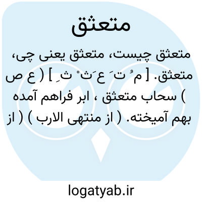 متعثق. [ م ُ ت َ ع َث ْ ث ِ ] ( ع ص ) سحاب متعثق، ابر فراهم آمده بهم آمیخته. ( از منتهی الارب ) ( از اقرب الموارد ) ( ناظم الاطباء ). و رجوع به تعثق شود.