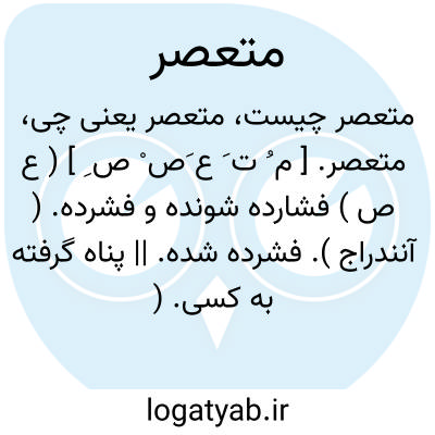 متعصر. [ م ُ ت َ ع َص ْ ص ِ ] ( ع ص ) فشارده شونده و فشرده. ( آنندراج ). فشرده شده. || پناه گرفته به کسی. ( ناظم الاطباء ) ( از منتهی الارب ) ( از اقرب الموارد ). و رجوع به تعصر شود.