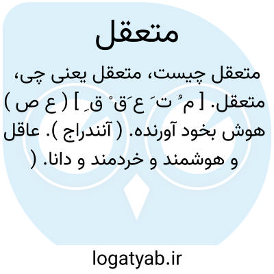 متعقل. [ م ُ ت َ ع َق ْ ق ِ ] ( ع ص ) هوش بخود آورنده. ( آنندراج ). عاقل و هوشمند و خردمند و دانا. ( ناظم الاطباء ) ( از منتهی الارب ) ( از اقرب الموارد ). || قابل تعقل و شایسته دریافت. ( ناظم الاطباء ). و رجوع به تعقل شود.