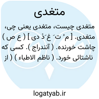متغدی. [ م ُ ت َ غ َدْ دی ] ( ع ص ) چاشت خورنده. ( آنندراج ). کسی که ناشتائی خورد. ( ناظم الاطباء ) ( از منتهی الارب ) ( از اقرب الموارد ). || آن که شام می خورد. ( ناظم الاطباء ) ( از فرهنگ جانسون ). و رجوع به تغدی شود.