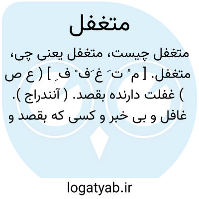 متغفل. [ م ُ ت َ غ َف ْ ف ِ ] ( ع ص ) غفلت دارنده بقصد. ( آنندراج ). غافل و بی خبر و کسی که بقصد و عمد غفلت می ورزد. ( ناظم الاطباء ) ( از منتهی الارب ) ( از اقرب الموارد ). و رجوع به تغفل شود.