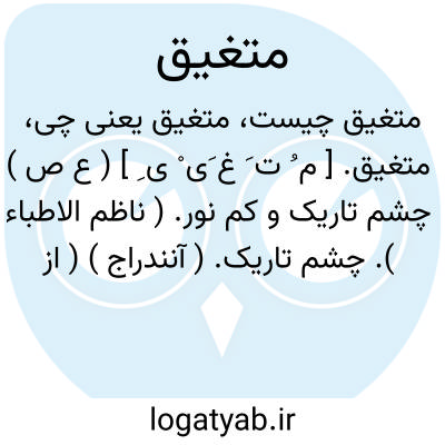 متغیق. [ م ُ ت َ غ َی ْ ی ِ ] ( ع ص ) چشم تاریک و کم نور. ( ناظم الاطباء ). چشم تاریک. ( آنندراج ) ( از منتهی الارب ) ( از اقرب الموارد ).