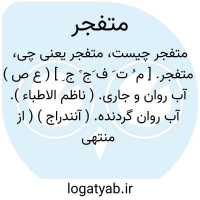 متفجر. [ م ُ ت َ ف َج ْ ج ِ ] ( ع ص ) آب روان و جاری. ( ناظم الاطباء ). آب روان گردنده. ( آنندراج ) ( از منتهی الارب ) ( از اقرب الموارد ). || صبح روشن. || جوانمرد و با سخاوت. ( ناظم الاطباء ) ( از منتهی الارب ) ( از اقرب الموارد ). و رجوع به تفجر شود.