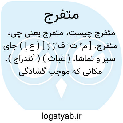 متفرج. [ م ُ ت َ ف َرْ رَ ] ( ع اِ ) جای سیر و تماشا. ( غیاث ) ( آنندراج ). مکانی که موجب گشادگی خاطر گردد. محل سیر: دیگر آن که کتب تاریخ متفرجی نزه و متنزهی بدیع باشد. ( تجارب السلف ). زمین چون دیبای مشجر و هوا چون حله زیبای مطیر به رنگ و بوی راحت دلها برآمده چنین موضعی متنزه و متفرج او بود. ( مرزبان نامه، ص 229 ).
