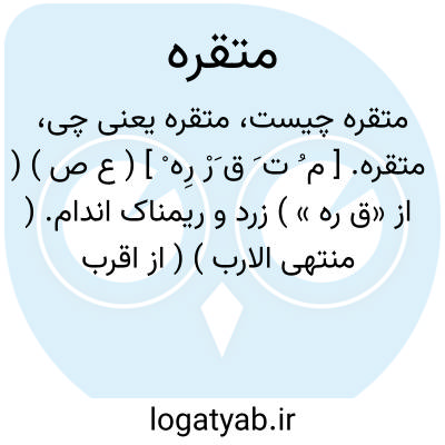 متقره. [ م ُ ت َ ق َرْ رِه ْ ] ( ع ص ) ( از «ق ره » ) زرد و ریمناک اندام. ( منتهی الارب ) ( از اقرب الموارد ). زرد و چرکین اندام. ( از ناظم الاطباء ).