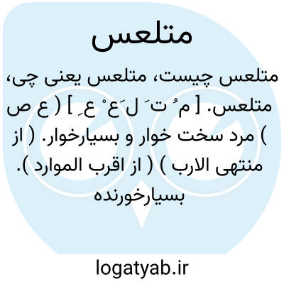 متلعس. [ م ُ ت َ ل َع ْ ع ِ ] ( ع ص ) مرد سخت خوار و بسیارخوار. ( از منتهی الارب ) ( از اقرب الموارد ). بسیارخورنده و پرخوار. ( ناظم الاطباء ).